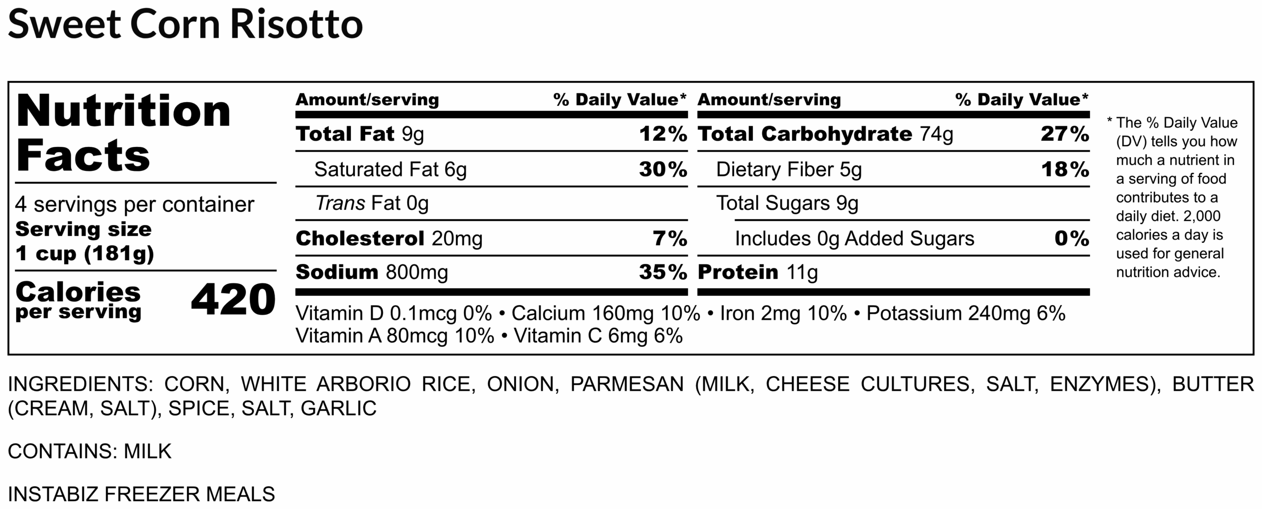Important: While some meals are labeled gluten-free, they are not prepared in a certified gluten-free commissary kitchen.